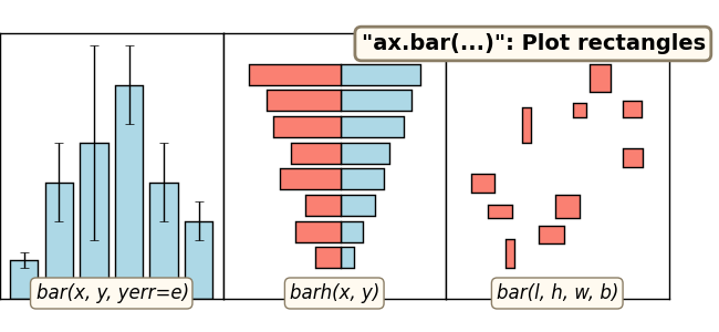 # ### Bar Plots: `ax.bar(...)` and `ax.barh(...)`