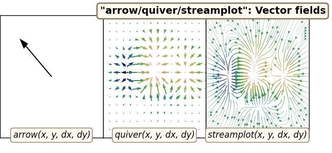 # Here's a simplified visual overview of matplotlib's most commonly used plot types. Let's browse through these, and then we'll go over a few in more detail. Clicking on any of these images will take you to the code that generated them. We'll skip that for now, but feel browse through it later.