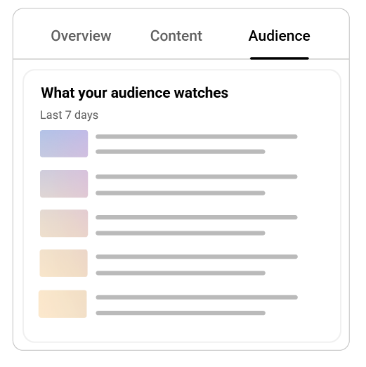 Within the Audience tab, you can find info about what content your viewers are watching. Based on this info, you can: