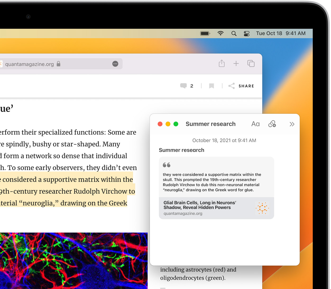 Notes is your go-to app to capture any thought. And with the new Quick Note feature, you can instantly jot down ideas as you browse websites without having to leave Safari.