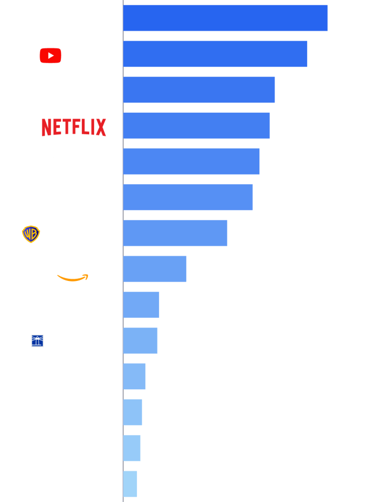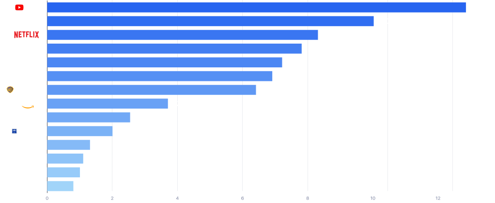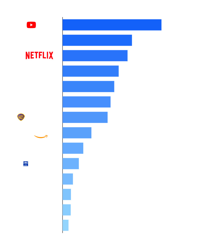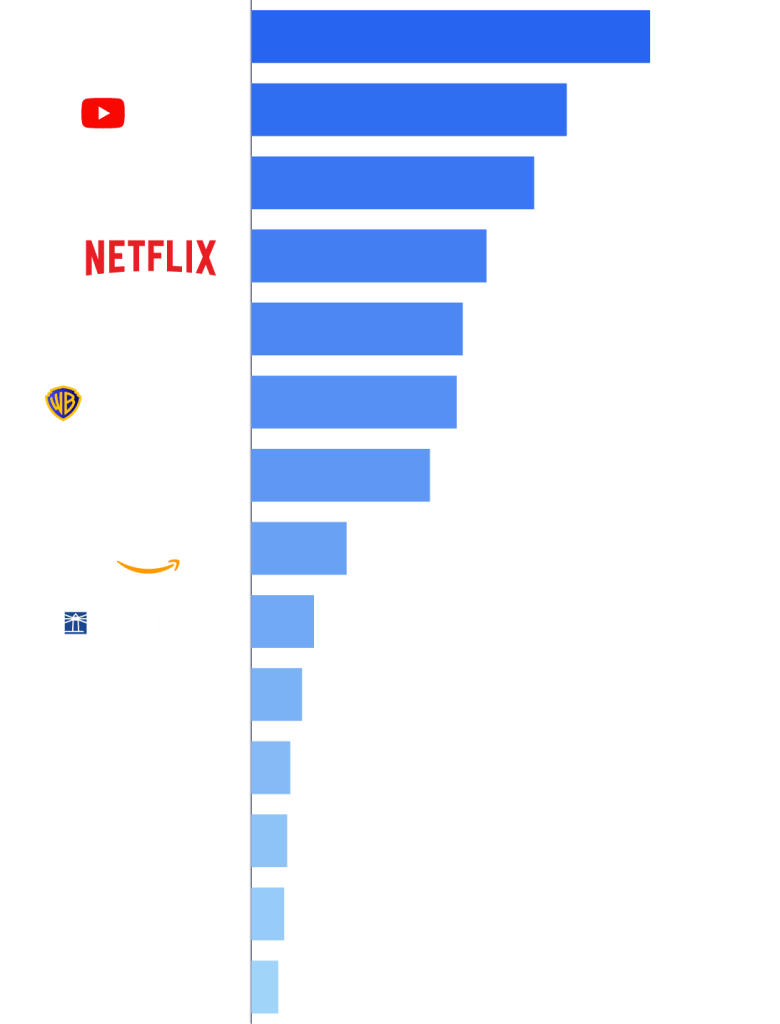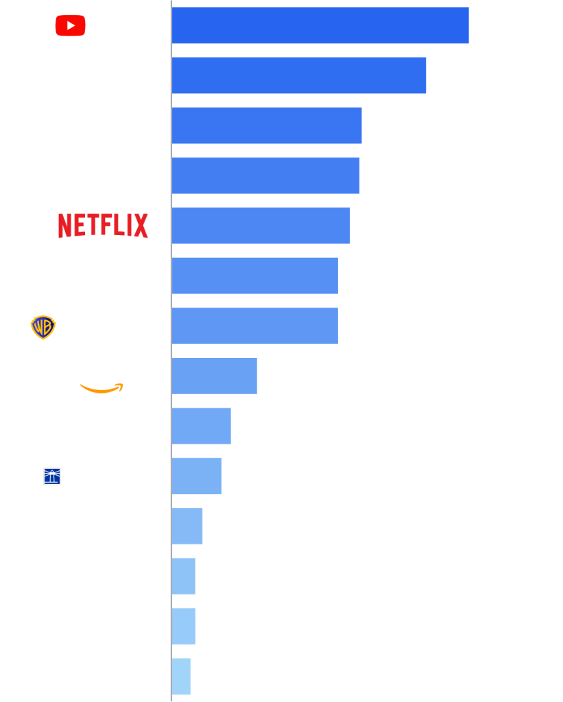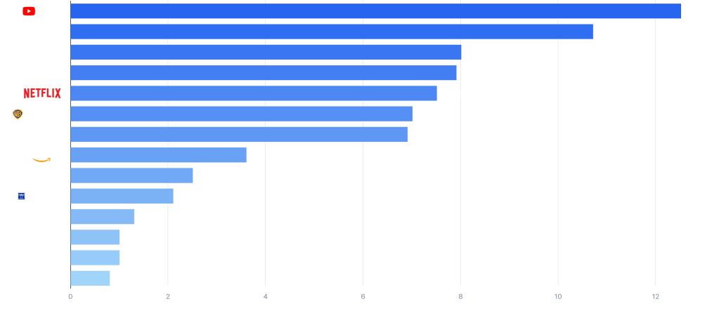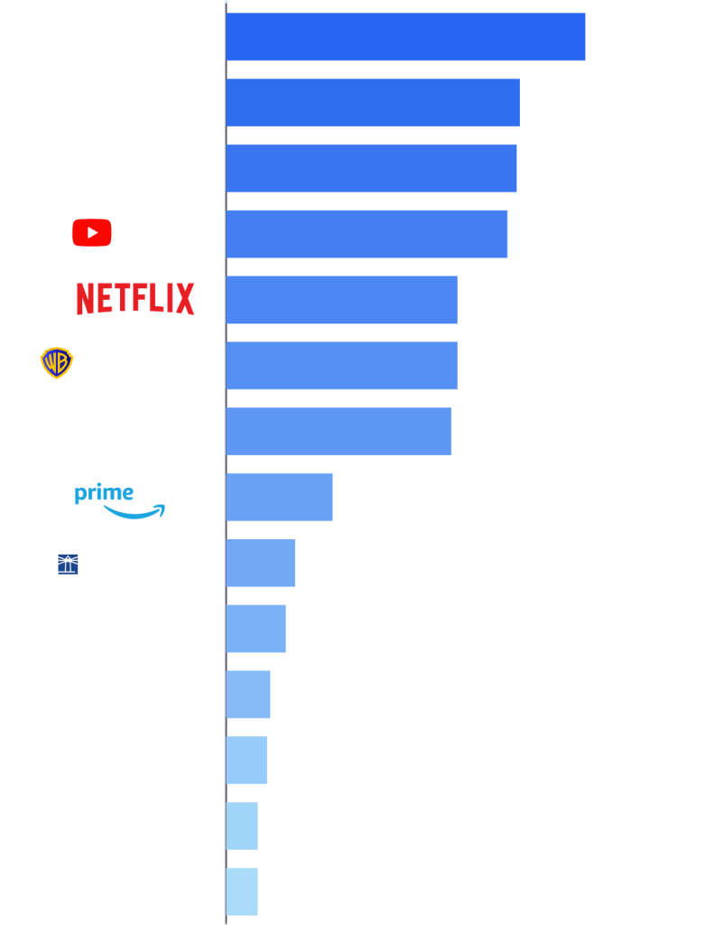 Streaming platforms listed as “other streaming” includes any high-bandwidth video streaming on television that is not individually broken out. Apps designed to deliver live broadcast and cable (linear) programming (VMVPD or MVPD applications like Sling TV or Charter/Spectrum) are excluded from “other streaming.”