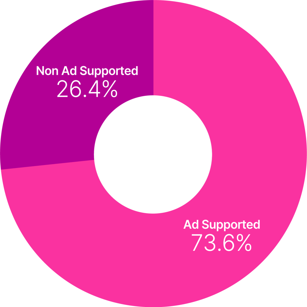 Linear streaming (as defined by the aggregation of viewing to vMVPD/MVPD apps) is excluded from the streaming category as the broadcast and cable content viewed through these apps credits to its respective category. This methodological change was implemented with the February 2023 interval.